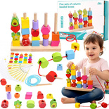 DREWNIANA UKŁADANKA KLOCKI SORTER KORALIKI ZESTAW DO NAWLEKANIA 25 el.