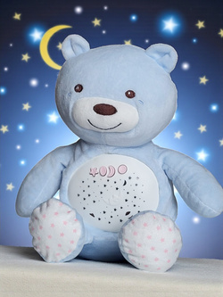 PLUSZOWY MIŚ USYPIACZ PROJEKTOR GWIAZD MUZYCZNA LAMPKA NOCNA I MELODIE BLUE
