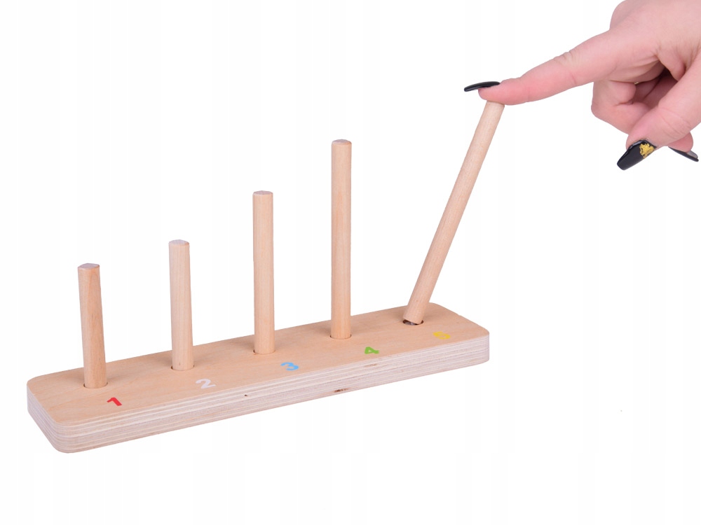 Bezpieczeństwo: Drewniane bolce na gumkach są elastyczne, co zwiększa bezpieczeństwo podczas zabawy.