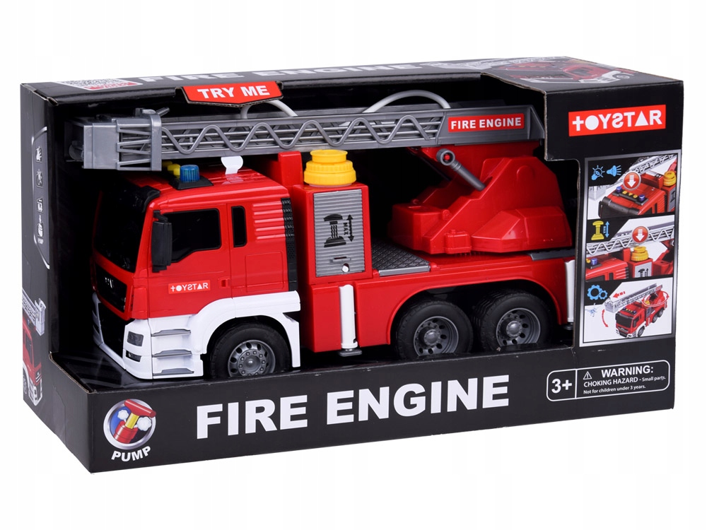 - Funkcja wody: po napełnieniu zbiornika wodą, dziecko może uruchomić funkcję wody, którą można wystrzelić przez wąż strażacki, naciskając pompkę.