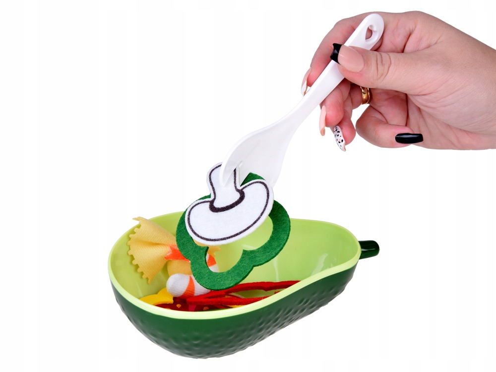 Kolorowa miska w kształcie awokado wraz z dodatkami to idealny zestaw dla małych kucharzy! Pozwala dziecku przygotować zdrową, pyszną sałatkę dla swoich lalek, misiów lub innych gości. Zabawa w gotowanie to doskonały sposób na naśladowanie dorosłych, rozwijanie wyobraźni i naukę zdrowych nawyków.