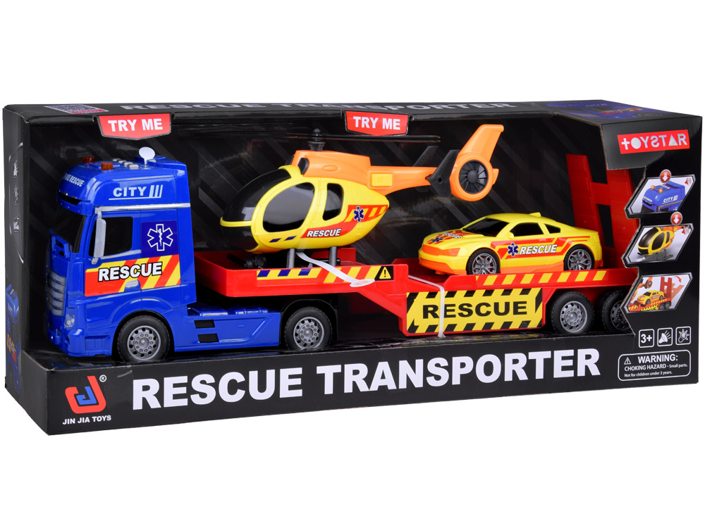 Wprowadź swoje dziecko w ekscytujący świat akcji ratunkowych dzięki temu wyjątkowemu zestawowi! Zabawka pozwala na realistyczną zabawę, łącząc pojazdy ratunkowe, takie jak ciężarówka z naczepą, helikopter oraz samochód osobowy.