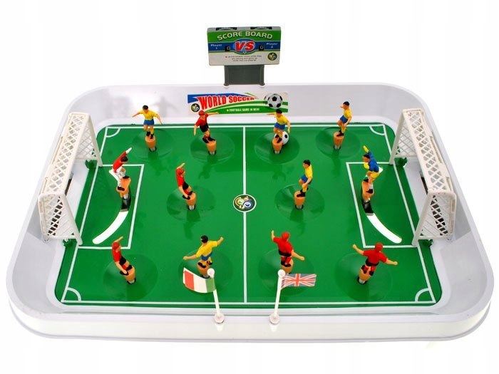 Gra bardzo popularna i znana wszystkim. Budzi ogromne emocje, dlatego każdy prawdziwy fan piłki nożnej musi ją mieć!Dwie drużyny po pięciu zawodników z każdej. Bramkarz jest aktywny, można nim poruszać, aby bronił bramki. Ten zestaw zapewni emocjonującą zabawę dziecku a i zapewne tatusiom też. W zabawie mogą brać udział co najmniej 2 osoby. Zapraszając więcej osób można urządzić prawdziwy turniej piłkarski, Mistrzostwa Europy, a nawet Mistrzostwa Świata.