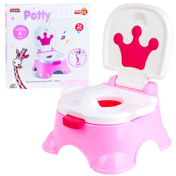 Prawdziwy nocnik dla króla bądź królewny. Tron z funkcją grania wesołej muzyczki, fanfarami, wiwatem i radością po właściwym jego użyciu. Świetna sprawa dla rodziców, którzy chcą oduczyć swoją pociechę korzystania z pampersa. Uczy załatwiania się, nagradzając dziecko fanfarami i wesołą melodyjką. Produkt można używać jako w pełni funkcjonalny nocniczek z klapą i wyjmowanym pojemnikiem oraz jako podstawka do umywalki. Nocniczek jest bardzo stabilny i wygodny łatwo także utrzymać go w czystości. W całości wykonany jest z plastiku.