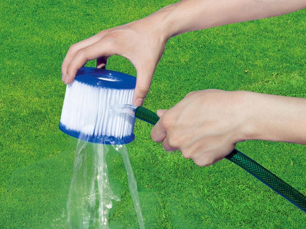 Wymienne filtry są niezbędne do optymalnego działania pomp filtrujących FLOWCLEAR™. Regularnie wymieniając wkłady w FLOWCLEAR™ przedłużysz żywotność pompy, maksymalnie wykorzystasz jej możliwości. Przy niewielkim zabrudzeniu filtr można czyścić wodą ze zwykłego węża ogrodowego. Przy większym zabrudzeniu producent zaleca wymianę filtra co ok. dwa tygodnie (na sezon powinno wystarczyć od 4 do 6 filtrów).